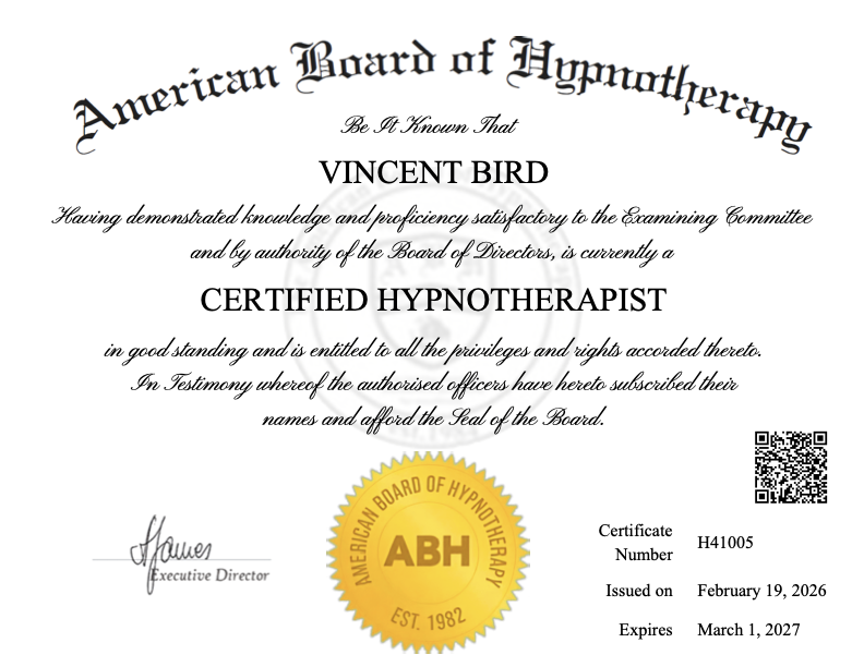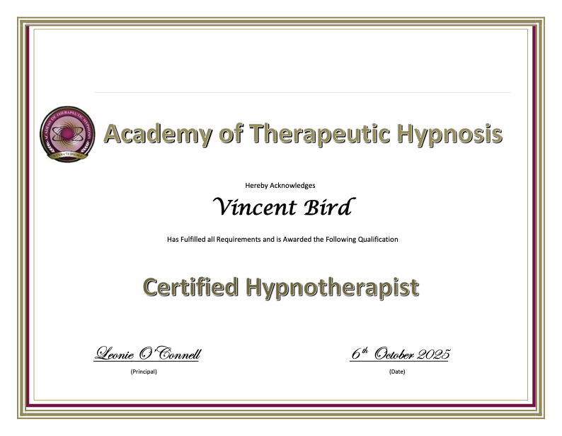 I'm Vincent Bird, a clinical hypnotherapist based on Sydney's Northern Beaches and Chatswood. I specialise in Quit Smoking/Vaping, Weight Reduction Programs including Virtual Gastric Band (VGB), and Anxiety, Panic Attacks and Phobias.